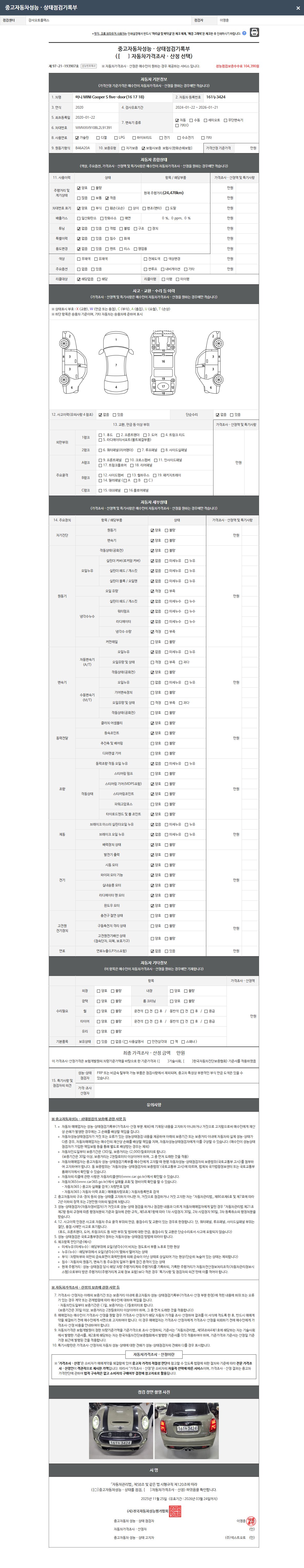 | 주행거리 | 24,478 km | 차량번호 | 161누3424 | 사고유무 | 성능기록부 참조 | 제시번호 | 제 2025160446 호 |