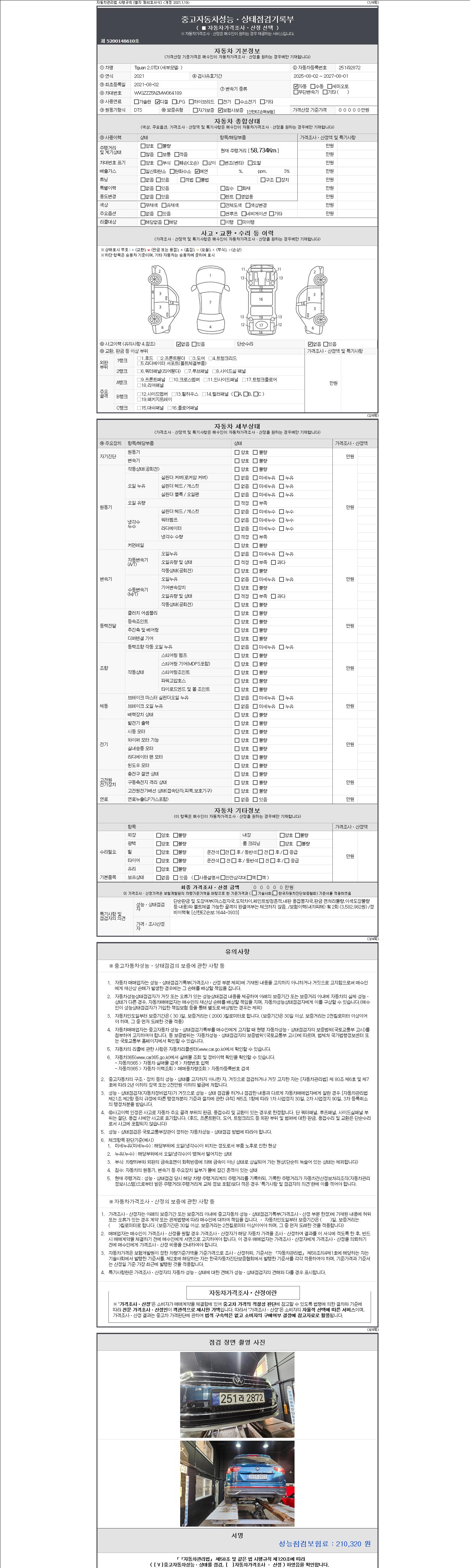 | 주행거리 | 58,734 km | 차량번호 | 251라2872 | 사고유무 | 성능기록부 참조 | 제시번호 | 제 2147483647 호 |