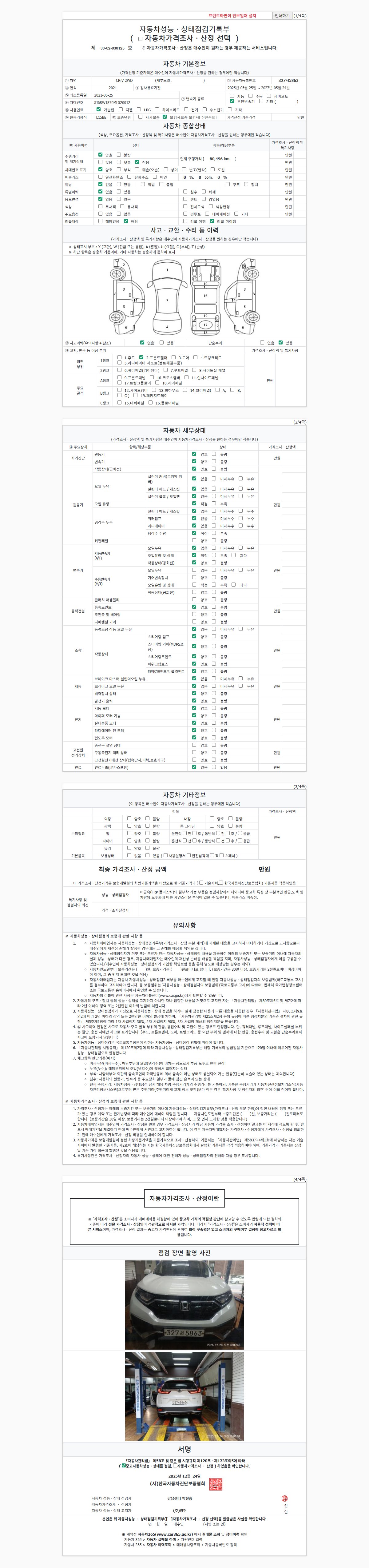 -중고자동차 매매업자를 통해 차량을 구입하실 경우 반드시 "중고자동차 성능, 상태점검 기록부"를 교뷰 받으셔야 하며, 매매업자는 반드시 의무 교부 하여야 압니다.