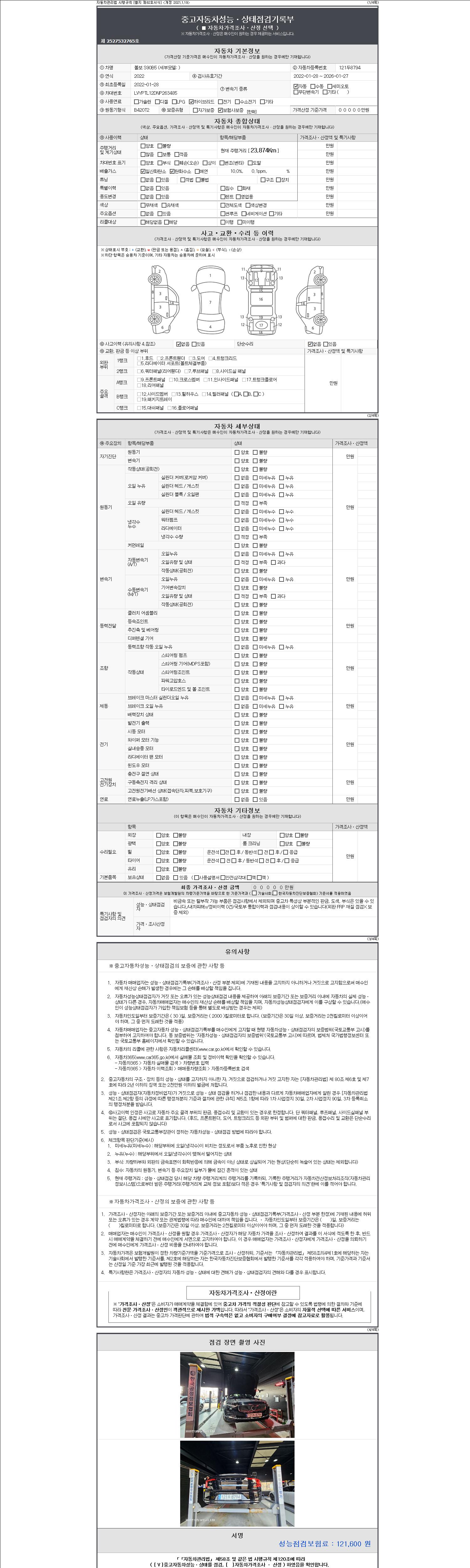 | 주행거리 | 23,874 km | 차량번호 | 121두8794 | 사고유무 | 성능기록부 참조 | 제시번호 | 제 2147483647 호 |