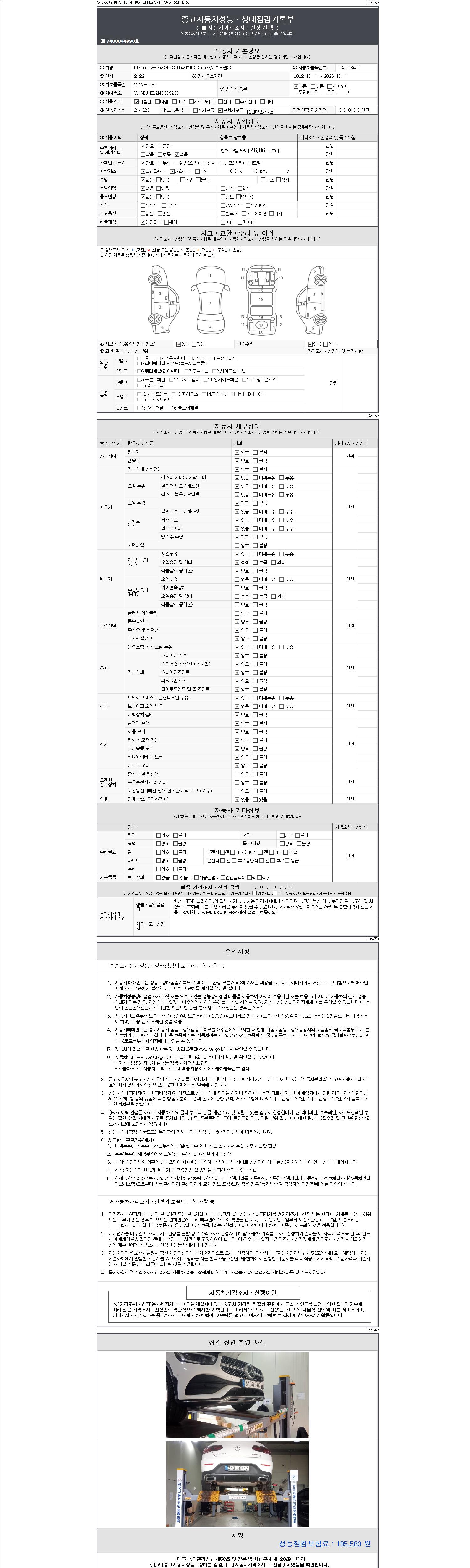 자동차관리법 시행규칙 제120조의 규정에 따라 별지 제 82호서식 《중고자동차 성능, 상태점검 기록부》를 발행한 성능, 상태점검자 및 매매자는 아래의 보증기간 또는 보증거리 이내의 중고자동차, 성능점검 기록부에 기재된 내용과 자동차의 실제 성능, 상태가 다른 경우 계약 또는 관계법령에 따라 매수인에 대하여 책임을 집니다.